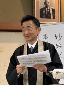 お取次をさせていただきます。今挙げさせて頂いたご讃題は、親鸞聖人の『二巻鈔』のなかで、善導大師の二河白道の譬を詳しく解釈しておられるところです。その「下巻」で西の岸の上で人があって、「『人ありて喚ばうていはく』というは、阿弥陀如来の誓願なり」と喚んでいるのは、阿弥陀如来の誓願、阿弥陀仏の本願とされます。